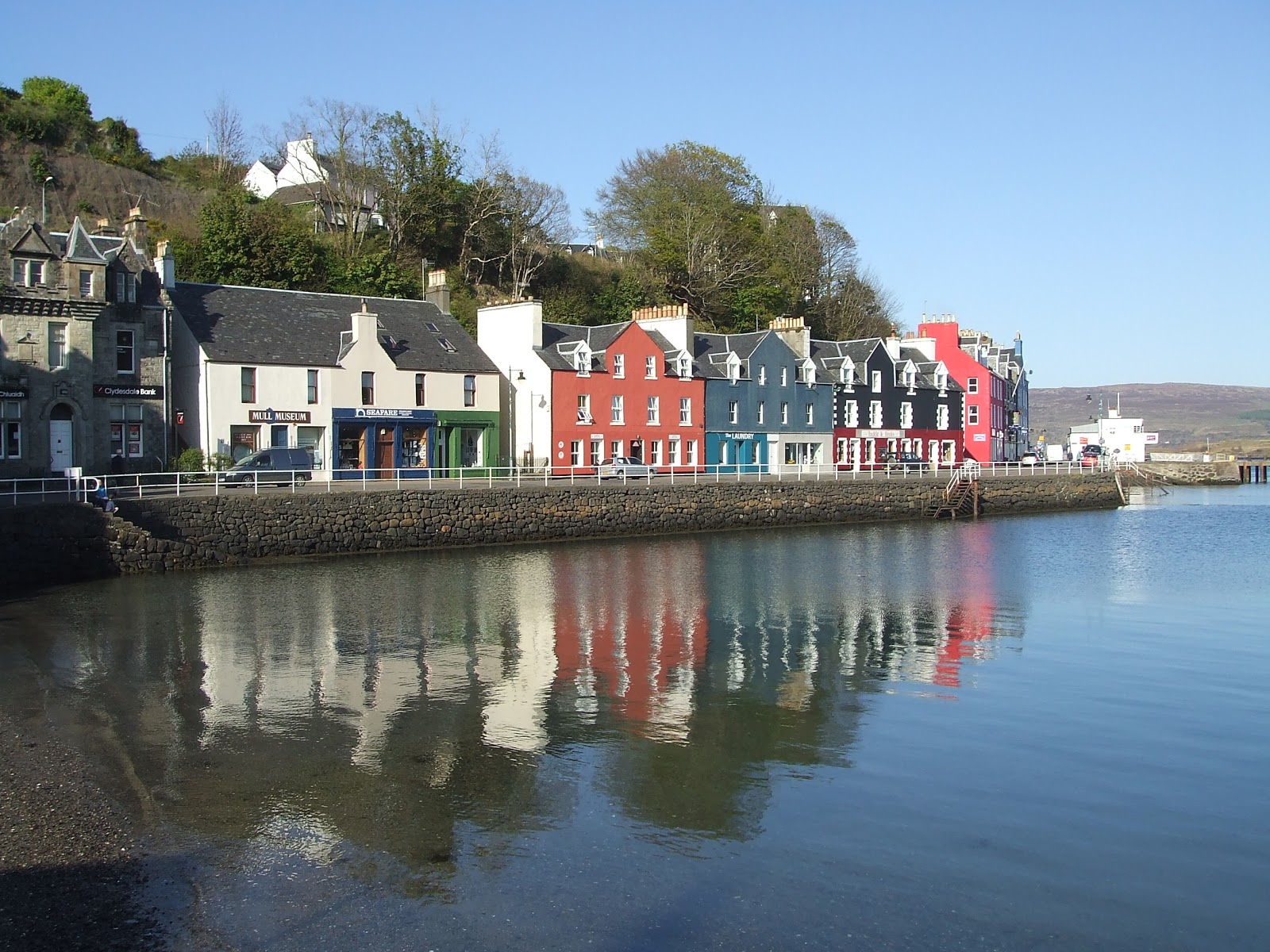 Dropped very suddenly down the steep hill into the captivating Tobermory with all it's painted houses huddled around the beautiful harbour. Even the fish and chip van on the pier is a Les Routiers!